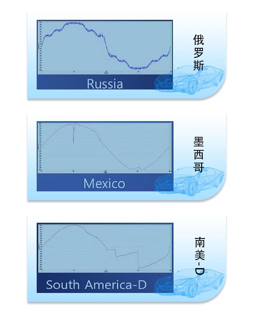 深圳某新能源車企為了推進全球化市場,需要對OBC進行多國電網適應性測試,但俄羅斯、墨西哥、南非等國家測試工況較為嚴苛,普通的測試電源無法編輯較為復雜的電網波形。以下為部分標準波形: