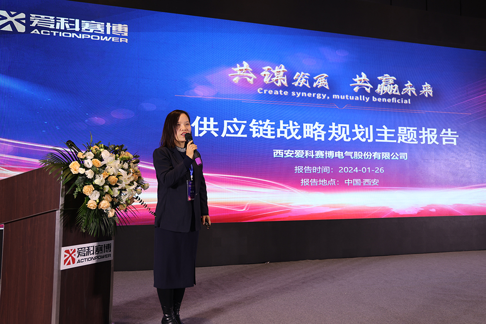 愛科賽博董事長兼總經(jīng)理白小青致開幕辭,向參會來賓介紹了愛科賽博的經(jīng)營發(fā)展和成長歷程,并對廣大優(yōu)秀供應商合作伙伴長期以來對愛科賽博的鼎力支持表示感謝;從電力電子行業(yè)發(fā)展趨勢、技術發(fā)展趨勢剖析了愛科賽博業(yè)務的未來發(fā)展機遇與挑戰(zhàn),并詳細闡述了愛科賽博的發(fā)展戰(zhàn)略規(guī)劃及總體目標,以及與供應商合作伙伴深度合作、實現(xiàn)共贏的機會和挑戰(zhàn),期盼與諸多優(yōu)秀的供應商伙伴攜手共贏,共創(chuàng)輝煌!