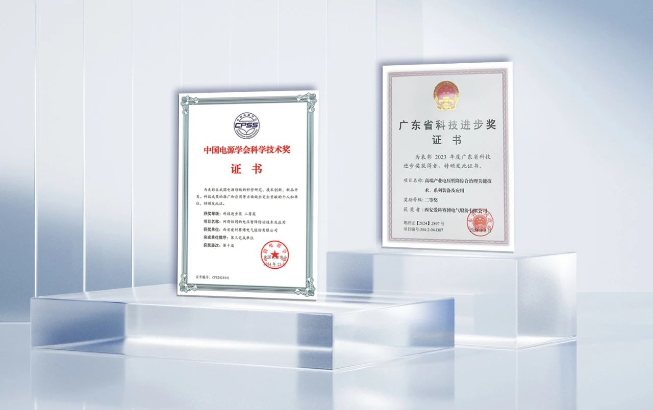 近期,愛科賽博電能質量領域捷報頻傳,“高端產業電壓暫降綜合治理關鍵技術、系列裝備及應用”項目,榮獲廣東省科技進步二等獎;“網荷協同的電壓暫降防治技術及應用”項目,榮獲中國電源學會科技進步二等獎。相繼榮獲的技術專業大獎,印證了愛科賽博在電能質量專業領域深厚的科研實力與卓越的創新能力。