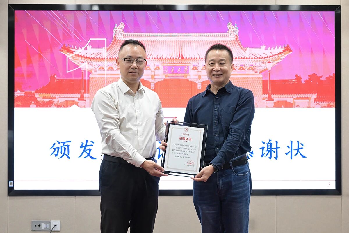 10月11日,在上海交通大學電氣工程學院,舉行了愛科精密測試電源設(shè)備捐贈儀式。上海交通大學發(fā)展聯(lián)絡(luò)處處長/教育發(fā)展基金會秘書長汪雨申、電氣工程學院常務副院長劉亞東、電氣工程學院黨委副書記李喆、電氣工程學院副院長李睿、電氣工程學院教授朱淼、電氣工程學院學工負責人梁茂宗,西安愛科賽博電氣股份有限公司董事長白小青、華東大區(qū)營銷總監(jiān)梁俊、人力資源總監(jiān)邵曼媛,及上海交大電氣工程學院師生代表共同出席了此次活動。