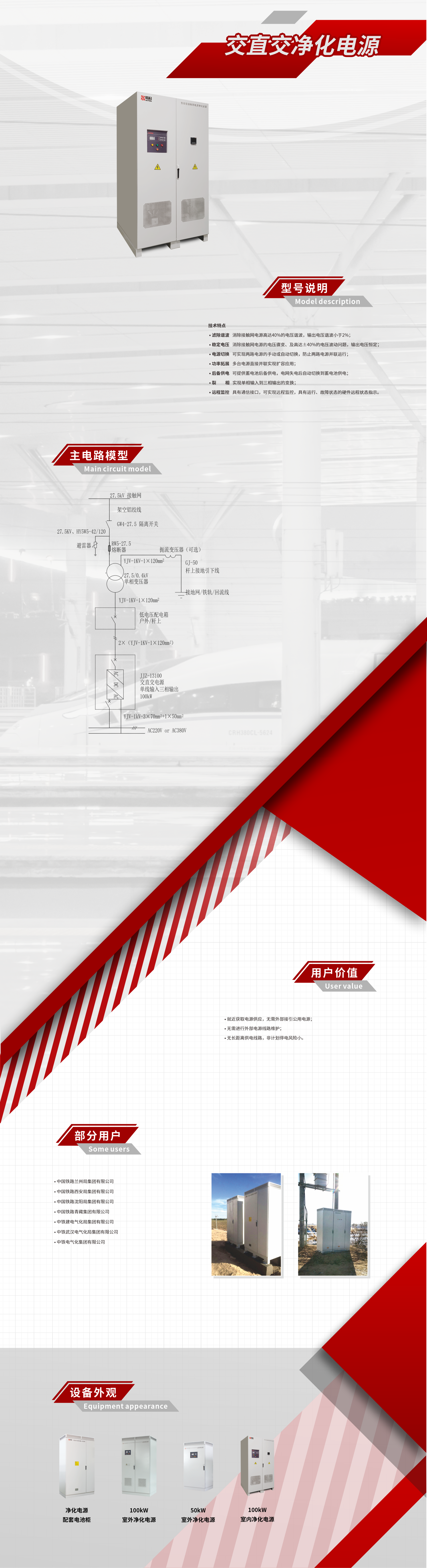對通過27.5/0.23kV動力變壓器從牽引網取得的電源進行測量,結果表明:電壓有效值在154V~286V變化;電壓峰值在210V~450V內變化;電壓諧波含量Uthd超過20%。這種電壓易導致用電負荷運轉異常或出現損壞。 為使鐵路沿線電力負荷得到高質量電源供應,愛科賽博于2008年推出0.4kV交直交型接觸網電源凈化裝置系列