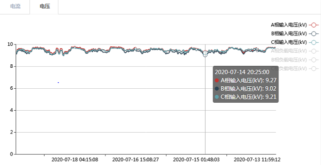 某配網線路整條10kV線長度85km,架空線路采用LGJ-120mm2的鋼芯鋁絞線。由于架空線敷設距離較長,造成10kV末端電壓最低時候達到8.6kV,嚴重影響后級居民用戶正常的生產生活用電。