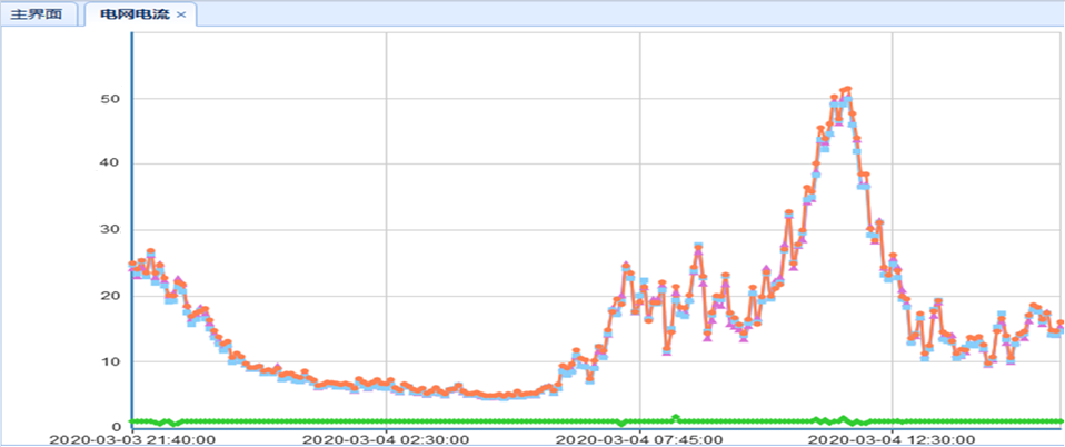 治理后電網側三相電流曲線圖